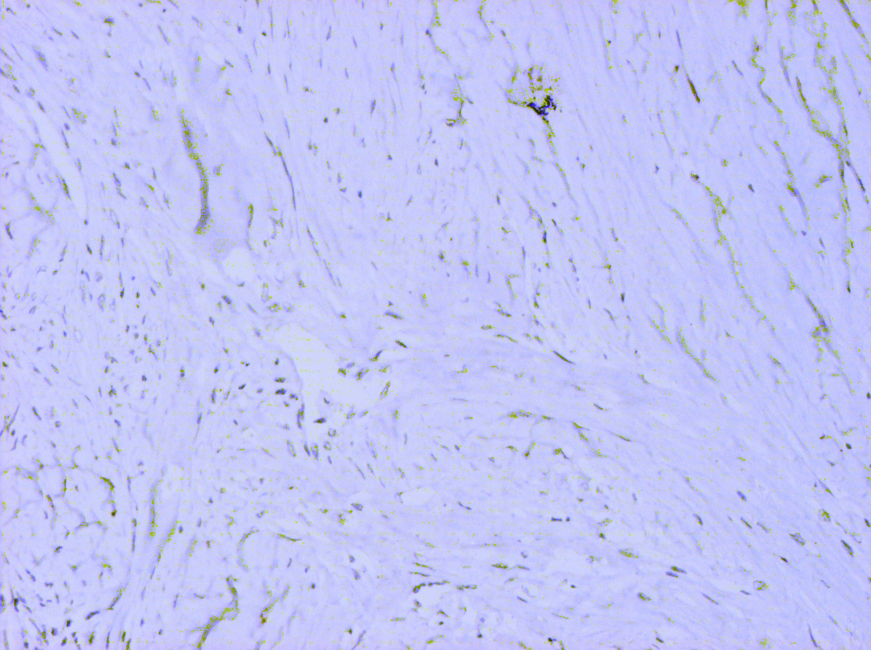 Матеріали та методи. Для ІГХ-дослідження було відібрано 60 парафінових блоків пухлин, у яких гістологічно було верифіковано діагноз саркоми (42) та філоїдної пухлини (18). ІГХ-дослідження проводили з використанням спектра відповідних антитіл, який включав маркери панцитокератинів (клон AE1/AE3); ERG (клон EP111); SOX-10 (клон EP268); TLE1 (клон 1F5); кальдесмону (клон h-CD); міогеніну (Myf-4) (клон F5D); MyoD1 (клон EP212); десміну (клон D33); MDM2 (клон 1B10); CDK4 (клон EP180); CD68 (клон PG-M1); CD34 (клон QBEnd 10); CD31 (клон JC70A); бета-катеніну (клон betaCatenin-1); гладеньком’язового актину альфа (клон 1A4); актину (клон HHF35); епітеліального мембранного антигену (EMA, MUC1) (клон E29). Також визначали рівень експресії маркера проліферації Ki-67 (клон MIB-1). Дослідження проводили в лабораторії CSD Health Care, м. Київ.