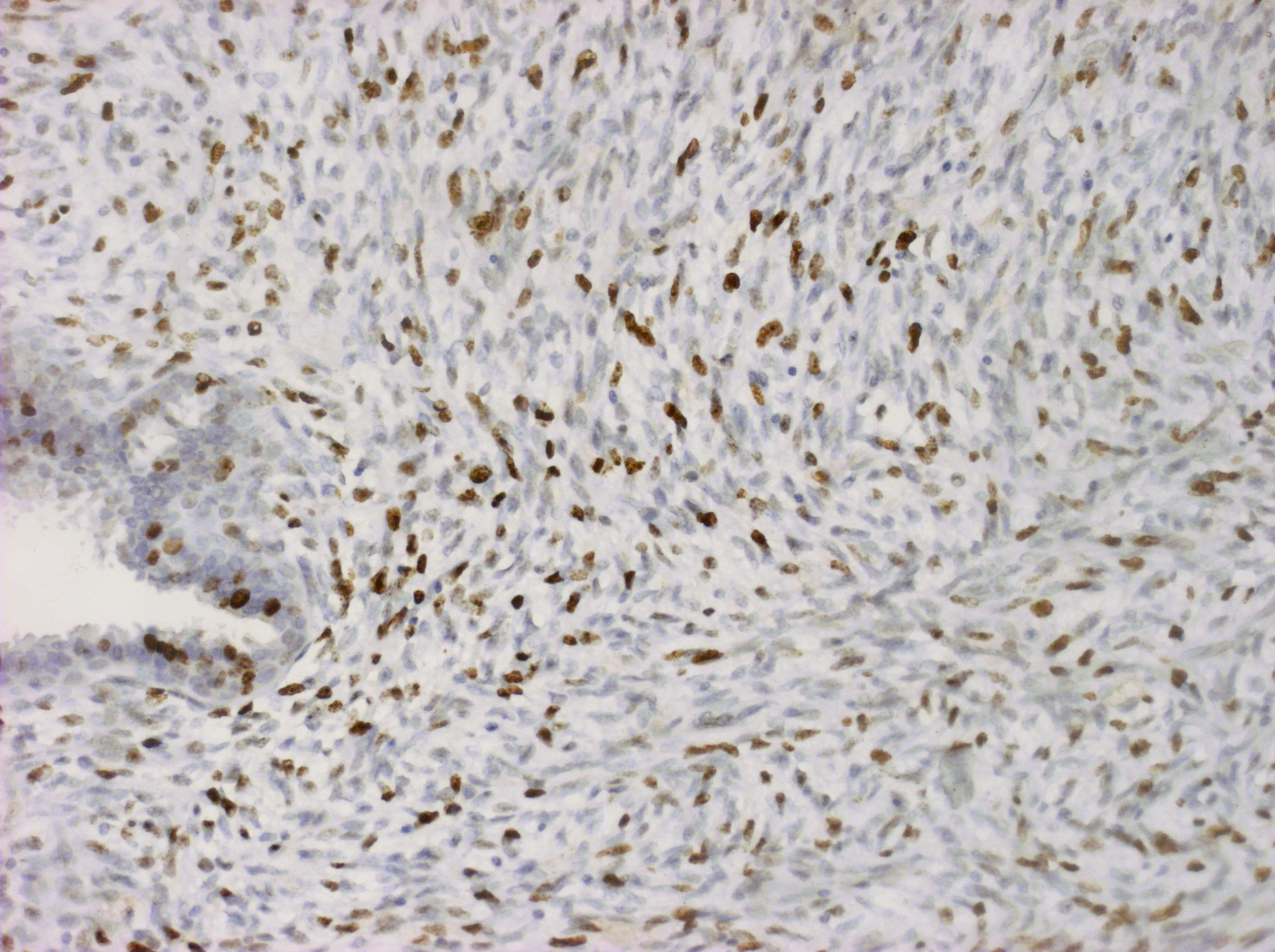 Висновки. Імуногістохімічні дослідження відіграють важливу роль у диференційній діагностиці і визначенні гістотипу СГЗ та встановленні точного діагнозу при ФП. Запропоновано діагностичний алгоритм, що включає необхідні ІГХ-маркери в якості базовової панелі для ІГХ-дослідження, як у випадку СГЗ, так і при злоякісних ФП.