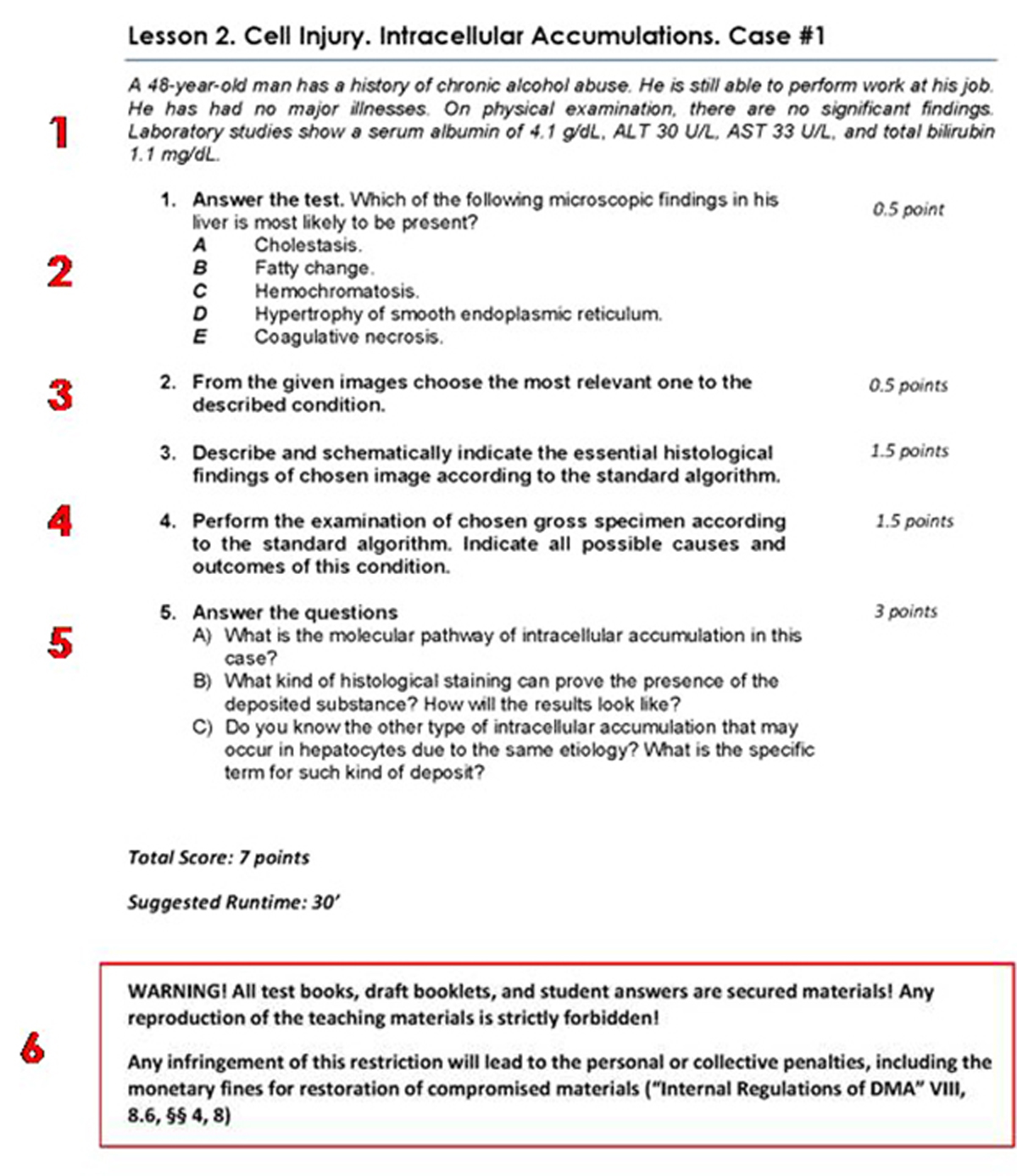 Основна частина. Для проведення занять за даною методикою ми відбирали і адаптували клінічні випадки з відкритих баз даних USMLE, MCCEE та інших джерел, які найбільш широко і актуально охоплювали відповідну тему заняття. До обраного клінічного випадку будувалося завдання: тест з множинним вибором, тестові зображення мікро- та макропрепаратів, опис обраних макро- та мікропрепаратів і проблемні запитання, які залучали аналітичні та синтетичні здібності мислення і найширше освітлювали теоретичну базу захворювань та станів, згаданих у даному випадку.