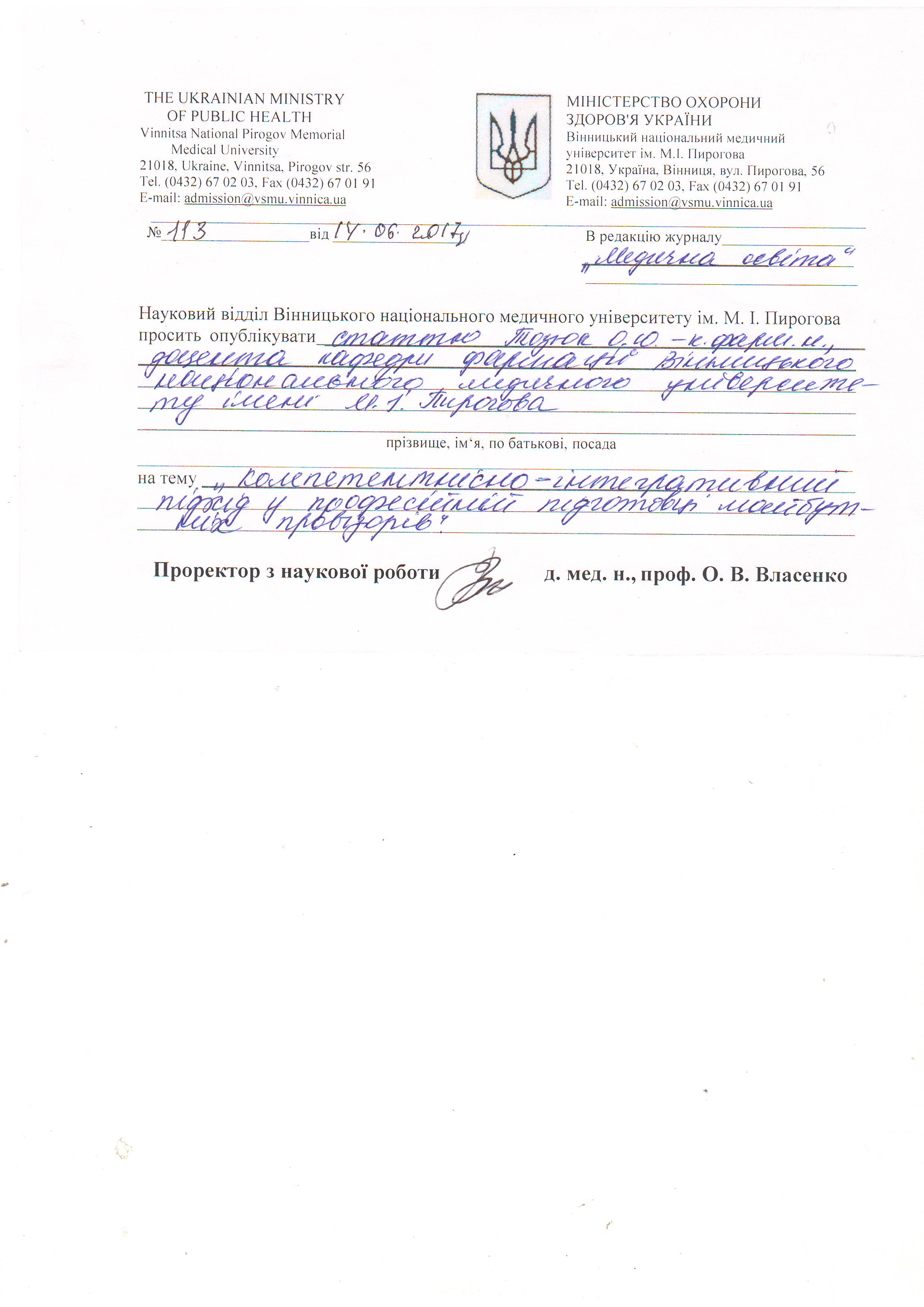 Kryvoviaz, O.V., Tomashevska, Yu.O., & Harnyk, M.S. (2015). Vykorystannia mizhpredmetnoi intehratsii pry pidhotovtsi studentiv farmatsevtychnoho fakultetu do derzhavnoi atestatsii [Interdisciplinary integration applying at pharmaceutical students’ training for state validation]. Medychna osvita – Medical Education, 3, 33-35 [in Ukrainian].