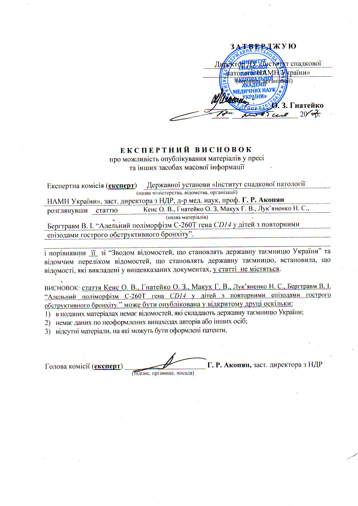 АЛЕЛЬНИЙ ПОЛІМОРФІЗМ С-260Т ГЕНА CD14 У ДІТЕЙ ІЗ ПОВТОРНИМИ ЕПІЗОДАМИ ГОСТРОГО ОБСТРУКТИВНОГО БРОНХІТУ