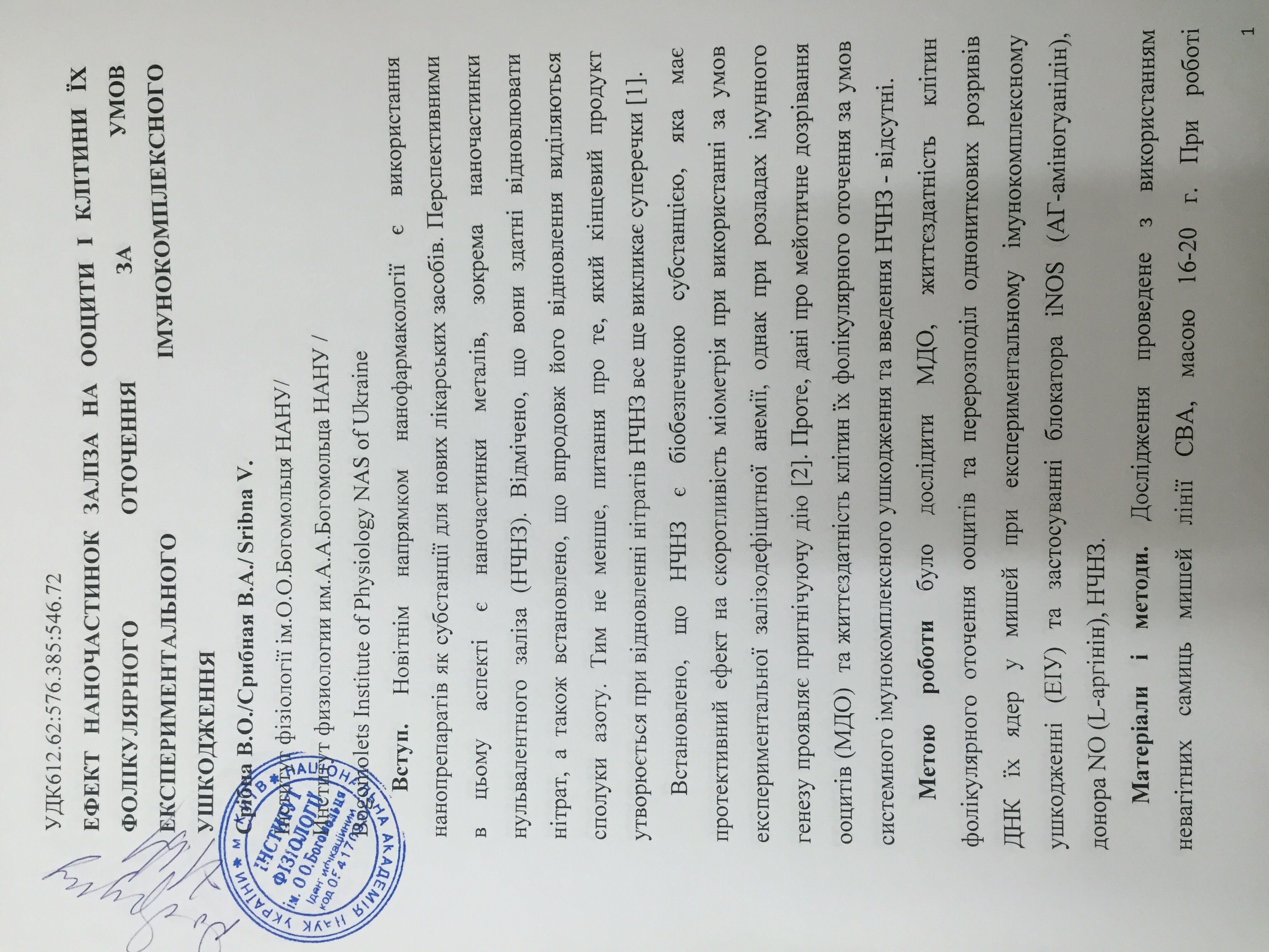 ЕФЕКТ НАНОЧАСТИНОК ЗАЛІЗА НА ООЦИТИ І КЛІТИНИ ЇХ ФОЛІКУЛЯРНОГО ОТОЧЕННЯ ЗА УМОВ ЕКСПЕРИМЕНТАЛЬНОГО ІМУНОКОМПЛЕКСНОГО УШКОДЖЕННЯ